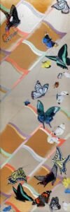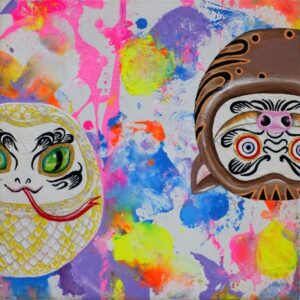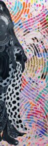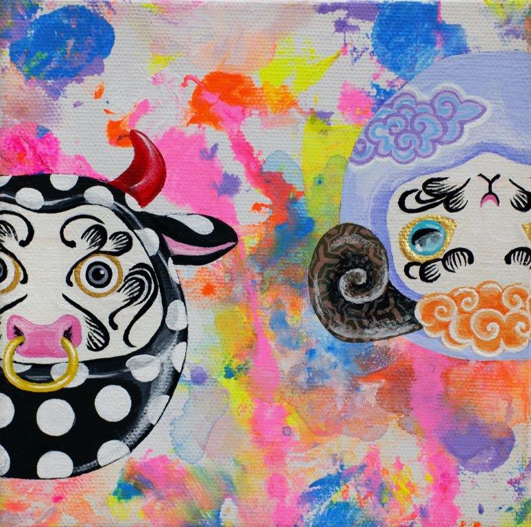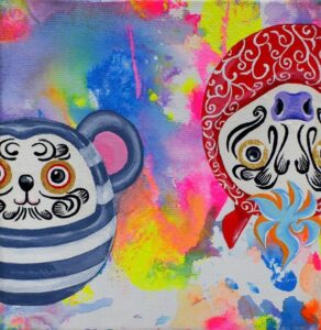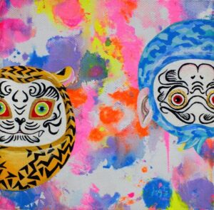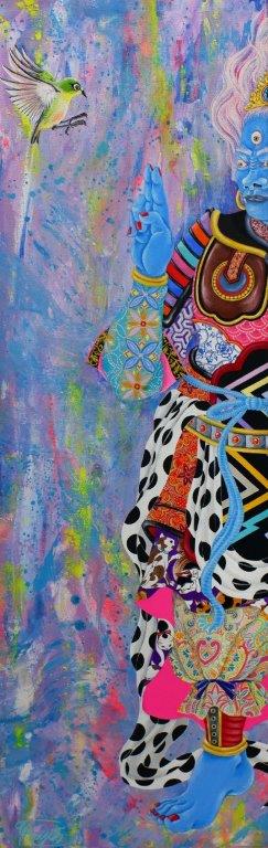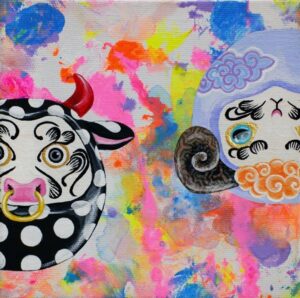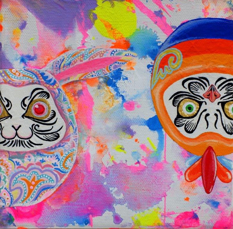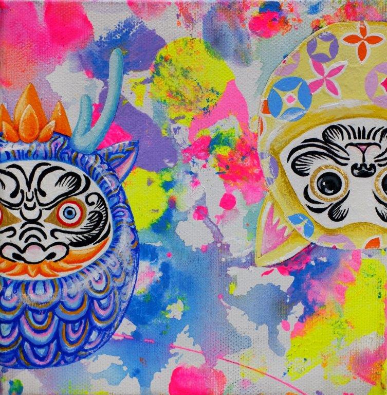 The main theme of my work is connection. As time continues unbroken, everything is connected in a constant cycle of birth and decay. Through the many colours and patterns of my work I try to express the intersections of people, things, and feelings. I find traditional Japanese patterns and kanji characters unique and beautiful, so I also incorporate these into my work.